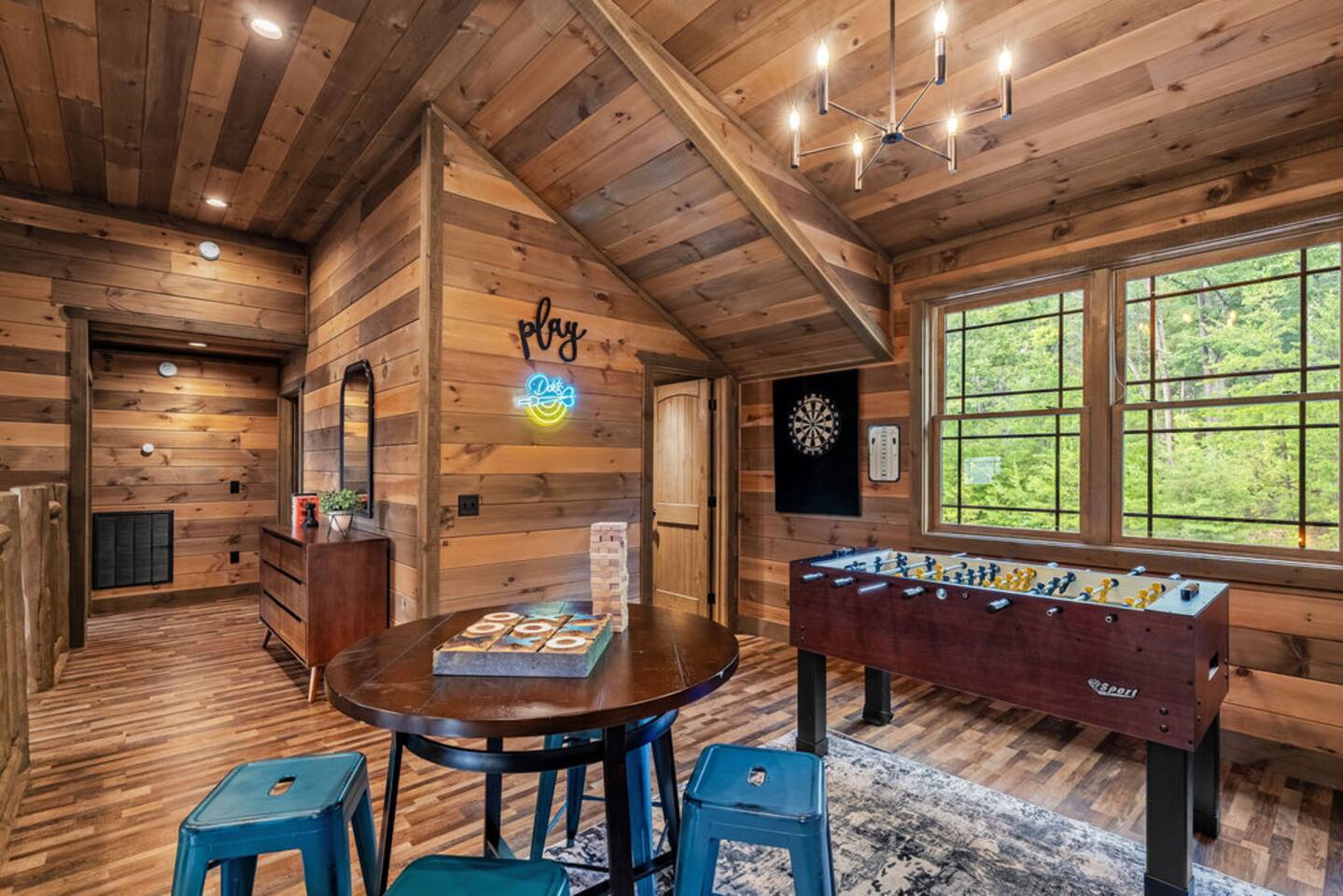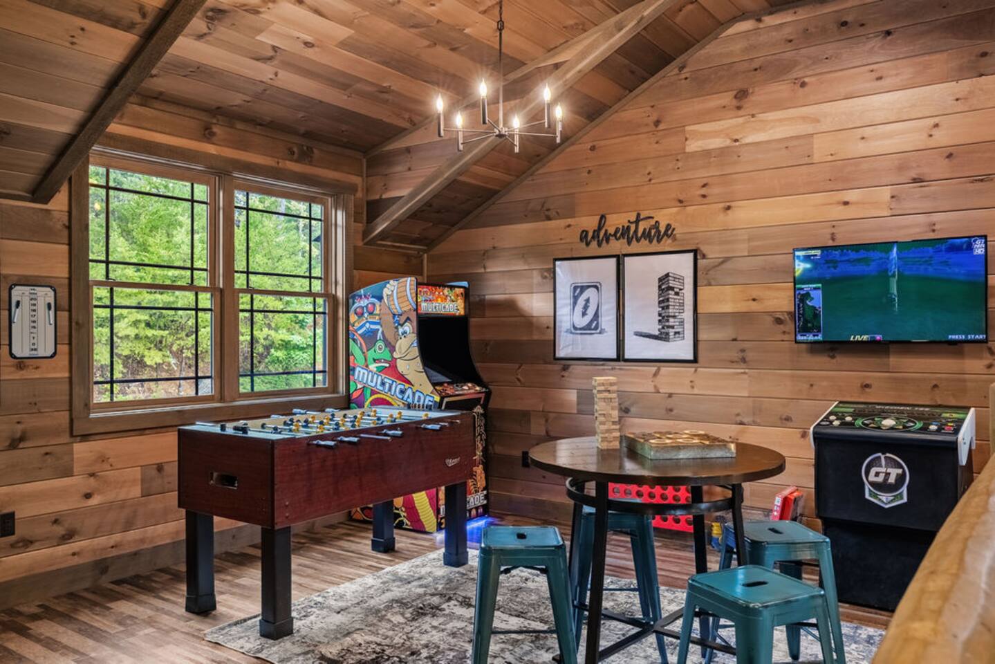 Welcome to Whiskey Ridge! This cabin is your next family getaway with stunning mountain views, a private indoor pool, hot tub, and top-tier amenities for all ages. Enjoy a theater room, game room with foosball and arcade games, a fully stocked kitchen, and cozy dining spaces. Relax by the fireplace or dine on the deck. Just minutes from top attractions, this cabin offers the perfect mix of comfort, fun, and Smoky Mountain charm. This isn’t just a stay. It’s an experience.