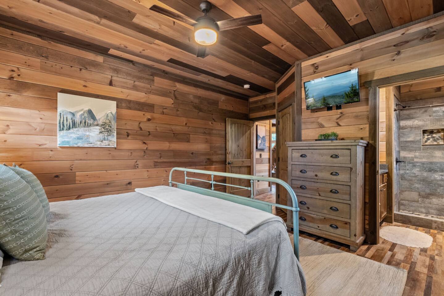 The MAIN LIVING area features a cozy fireplace, a fully equipped kitchen for group meals, and multiple decks that let you soak in the Smokies from every angle. There’s no shortage of room to gather, laugh, and make memories with loved ones.